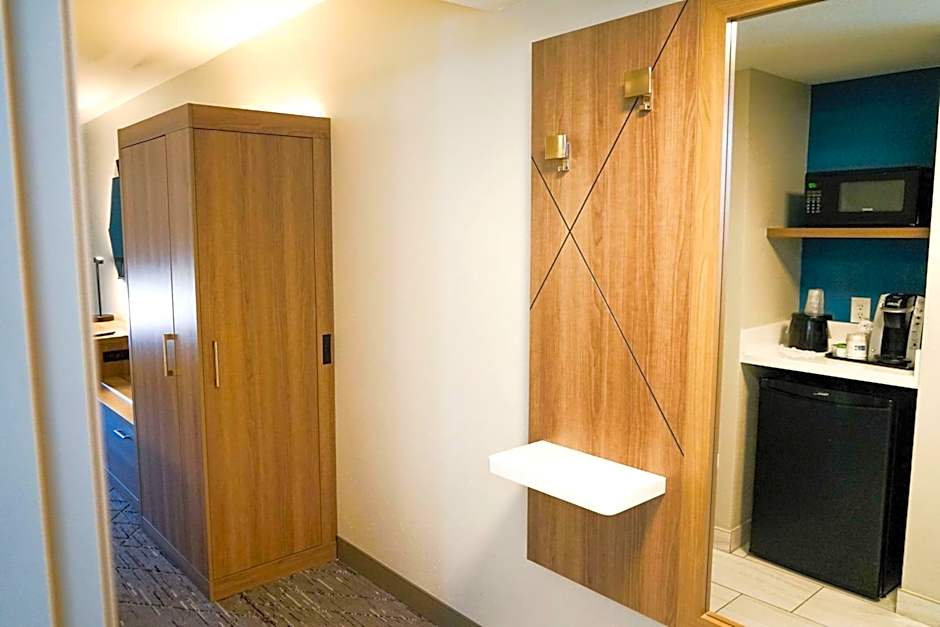 Room features a 32-inch flat-screen TV, a microwave, a fridge and a work desk.